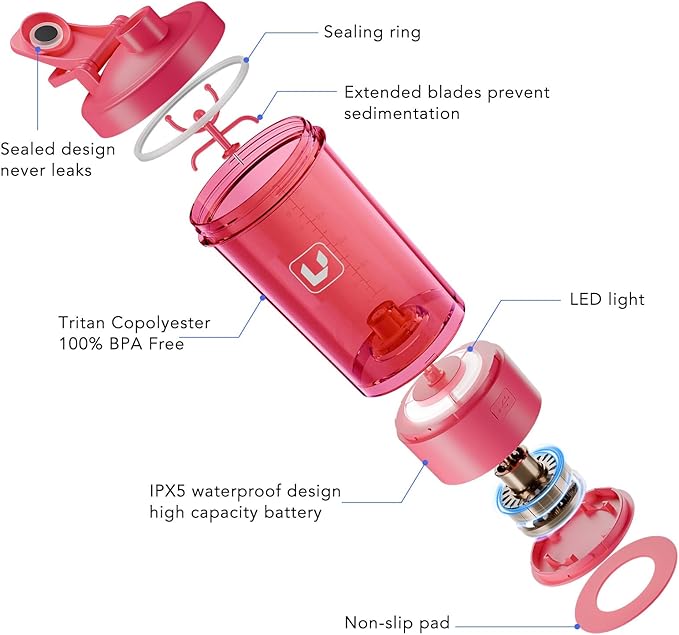 - One-Touch Smooth Mixing: Press once for consistently even blending. The intelligent motor creates a powerful vortex to ensure every sip is silky-smooth, automatically shutting off after 30 seconds , freeing you from manual shaking for protein shakes, meal replacements, and pre-workout formulas.