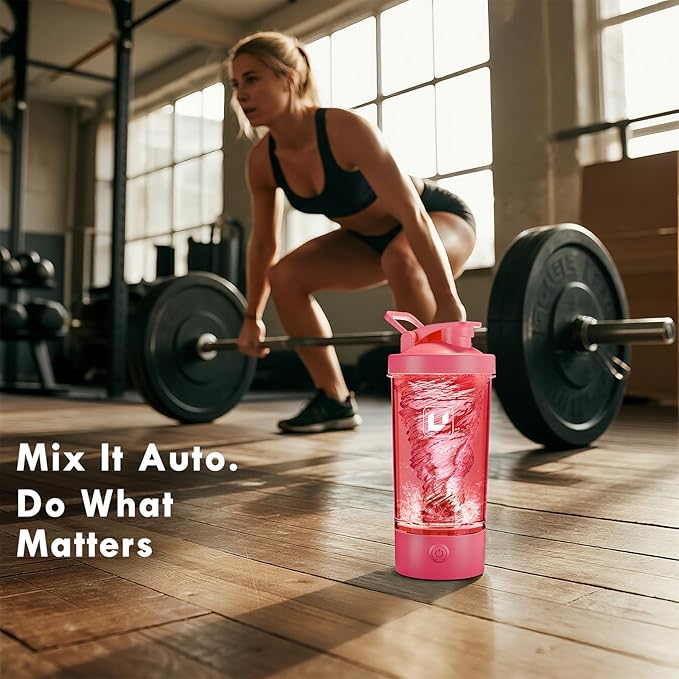Electric Shaker Bottle USB C Rechargeable Protein Shaker Bottle Shaker cups for Protein Shakes Mixer with 24oz BPA Free Tritan Meal Replacement Shakes Made with Tritan Portable Blender Cup (Rosered)