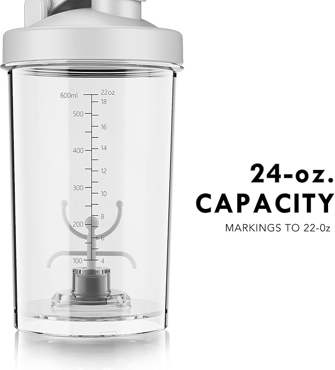 - Portable & Large Capacity: 24oz (700ml) shaker with built-in carrying hook makes it easy to take anywhere. Perfect for mixing up to 3 scoops of powder and 16oz of liquid without spills.