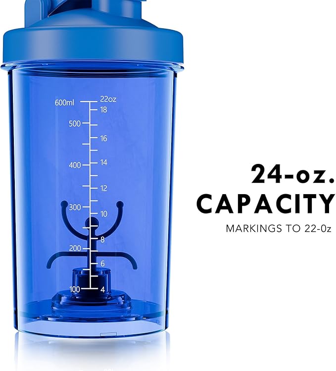 - Portable & Large Capacity: 24oz (700ml) shaker with built-in carrying hook makes it easy to take anywhere. Perfect for mixing up to 3 scoops of powder and 16oz of liquid without spills.