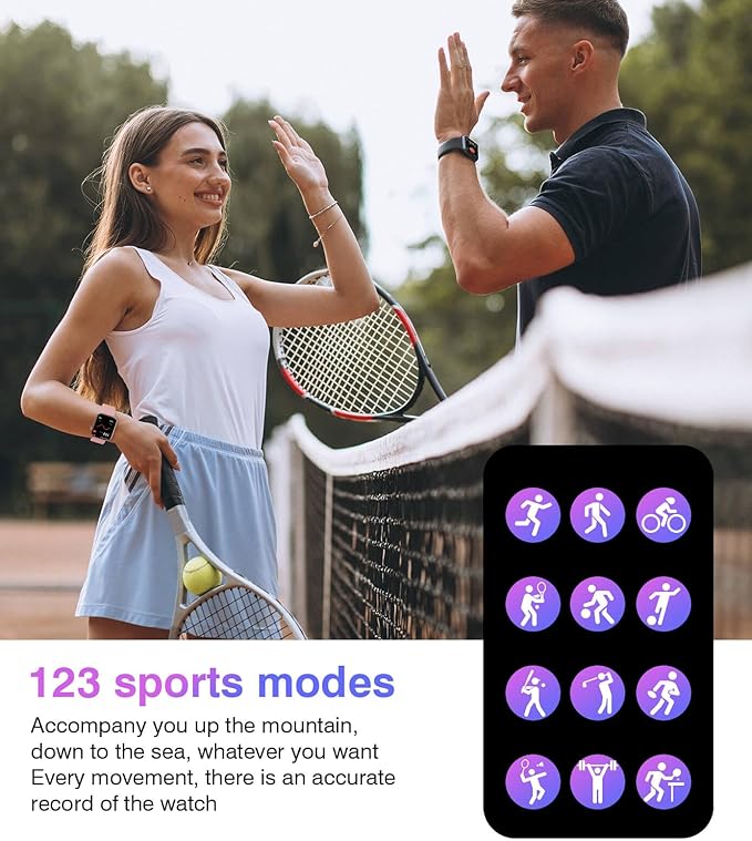 - 123 SPORTS MODES—Supports 123 sports modes including running, cycling, and yoga. The fitness tracker for Android and iOS accurately records distance, pace, and calories burned to help you optimize your workout and achieve your fitness goals.