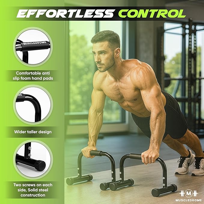 Push Up Bar for strength traning, Heavy Duty Steel Parallettes with Non Slip Handles, Stable Pushup Stands for Dips, Handstands & Calisthenics, 11.8in High x 17.9in Wide, Home Workout equipment