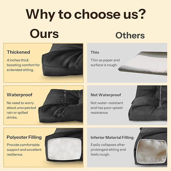 - High-Quality Fabric: Meticulously crafted from durable Oxford fabric, this outdoor bench cushion is both waterproof and UV-resistant. When enjoying the comfort it brings outdoors, you don't have to worry about unexpected rain or spilled drinks causing the cushion to discolor.