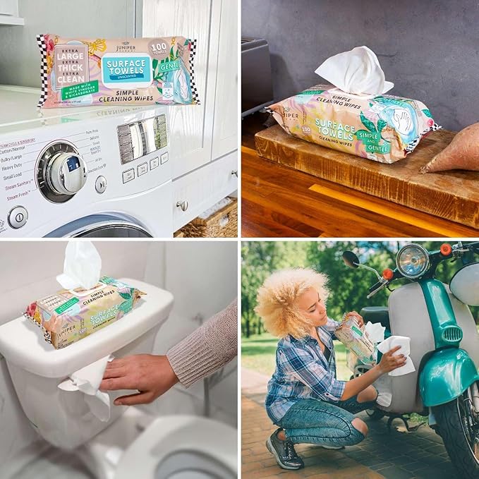 - 【EFFECTIVE MULTI-SURFACE CLEANING】Juniper Clean multi-purpose wipes are tough on grease, grime, and everyday messes. Use them confidently on hard surfaces such as countertops, wood, stainless steel, granite, appliances, phones, and more. Whether you're handling light cleanups or tougher tasks, these wipes are your go-to for a clean home.