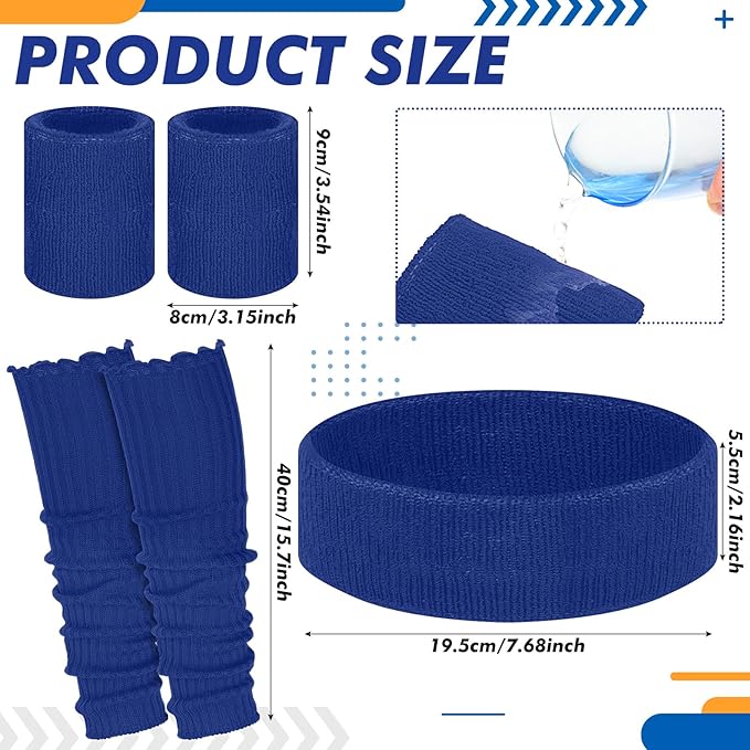 - Good Sweat Absorption: our 80s headband, 80s wristbands and outdoor leg warmers can absorb sweat quickly, to keep your skin dry and clean; 80s sweatbands sets are flexible and elastic, which can accommodate different dimensions of heads, wrists and legs