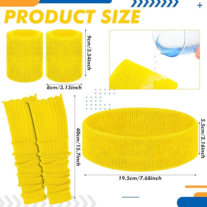 - Good Sweat Absorption: our 80s headband, 80s wristbands and outdoor leg warmers can absorb sweat quickly, to keep your skin dry and clean; 80s sweatbands sets are flexible and elastic, which can accommodate different dimensions of heads, wrists and legs