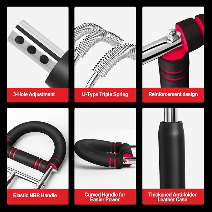 - 【Durable Construction】: High strength metal spring, strong elasticity, durability and stability. Exercise is smooth without stalling. this chest muscle builder covered in a leather sheath that makes it safer to exercise . The handle is made of thickened anti-slip foam, to ensure lasting performance and comfort