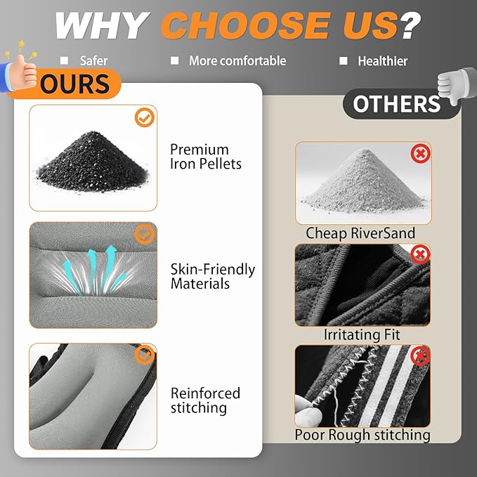 - BALANCED WEIGHT: The weight vests are filled with premium iron sand instead of cheap river sand. The ergonomic design ensures even weight distribution, which minimizes shoulder and neck fatigue, allowing you to focus on your workout and maximize your training efficiency.