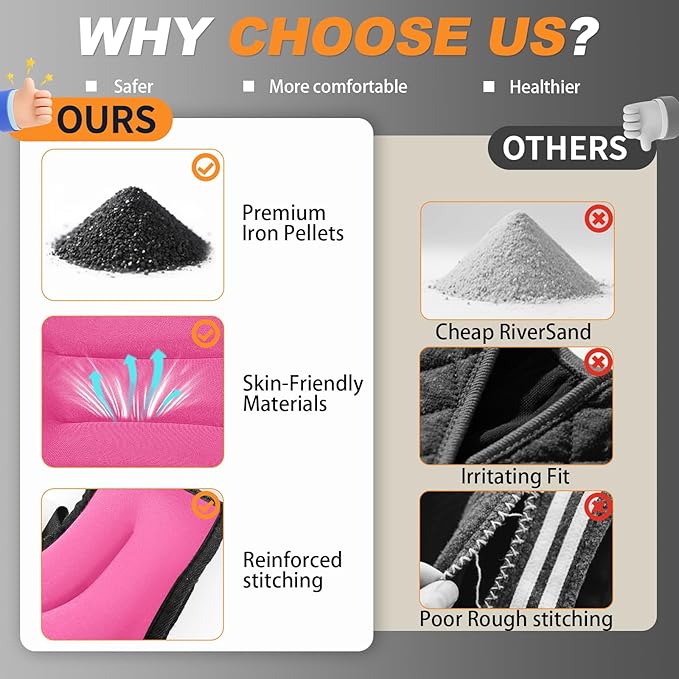 - BALANCED WEIGHT: The weight vests are filled with premium iron sand instead of cheap river sand. The ergonomic design ensures even weight distribution, which minimizes shoulder and neck fatigue, allowing you to focus on your workout and maximize your training efficiency.