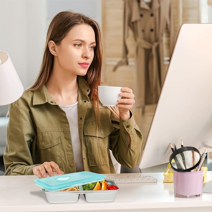 - 6PCS Premium 304 Stainless Steel Set: Package includes 6pcs 30oz double-compartment containers (7.99"x4.1"x1.6") with leakproof PP lids & silicone seals. Stackable design saves 50% storage space vs single units – ideal for family meal prep