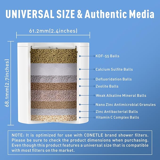 - Advanced Media Formula: Contains the same lab-verified KDF-55 layer and Vitamin C complex as original filters, helping maintain water clarity and skin comfort during bathing.
