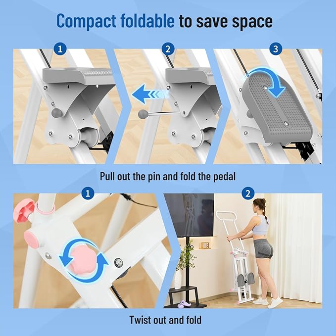 - 【Stable & Durable Design】 Built with a reinforced steel triangular frame, this foldable stair master for exercise at home ensures wobble-free stability and supports up to 350 lbs. Anti-corrosion coating and solid construction guarantee long-lasting performance for everyday workouts.
