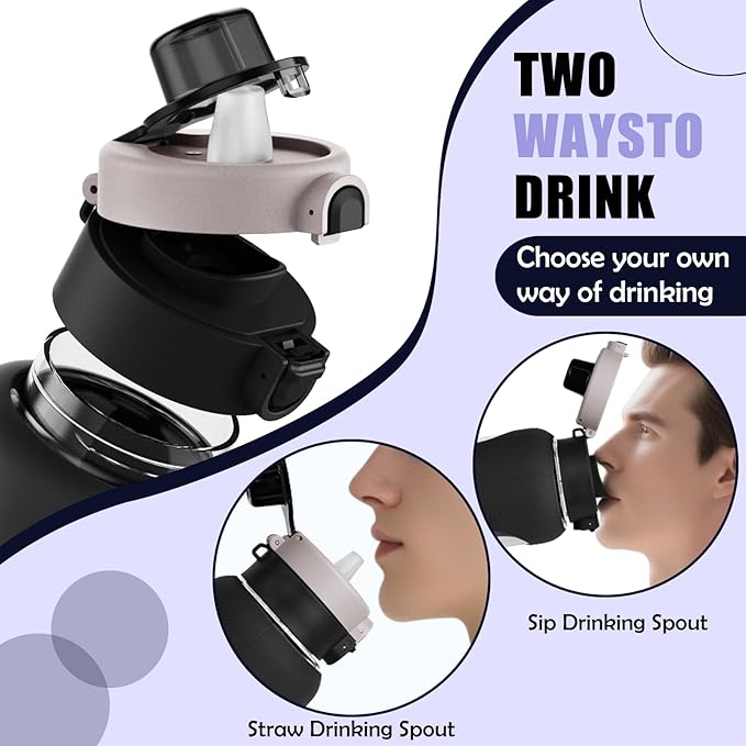 - Two Sizes (24oz & 40oz) for Every Hydration Goal: Whether you need a compact sports water bottle for a yoga class or a high-capacity companion for long hikes and intense workouts, we offer two versatile sizes reusable water bottle to match your lifestyle and keep you hydrated all day.