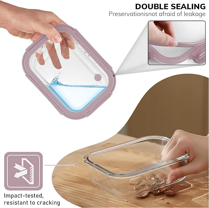 - 【Premium Borosilicate Glass Containers】 Made from high-quality borosilicate glass, these food storage containers withstand extreme temperatures (-4°F to 950°F), making them safe for freezer, microwave, oven, and even baking.