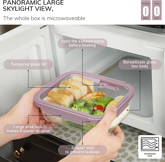 - 【Snap-On Tempered Glass Lids】 The durable tempered glass lids ensure even heating, prevent odor transfer, and are microwave-safe.