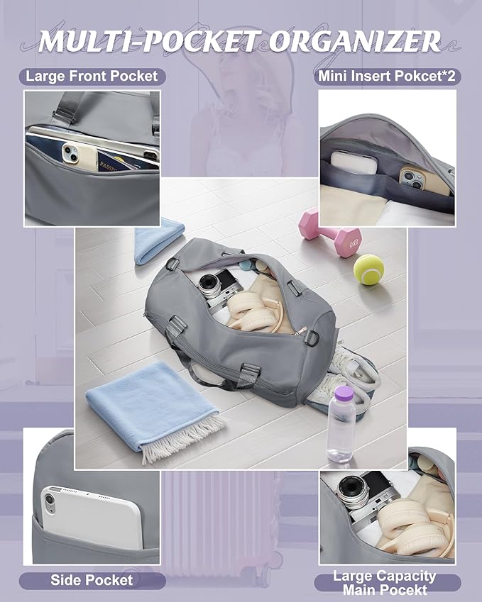 - Versatile Duffle Bag: This duffle bag for women is designed to be both fashionable and practical.It can be used as a women's gym sports bag,travel handbag,gym tote bag,carry on bag,weekend bag,suitable for exercise, travel, sports activities, tennis, basketball, yoga, camping, hiking, and many outdoor activities.Choosing our lightweight and portable shoulder bag will kickstart your healthy lifestyle and exciting journeys!