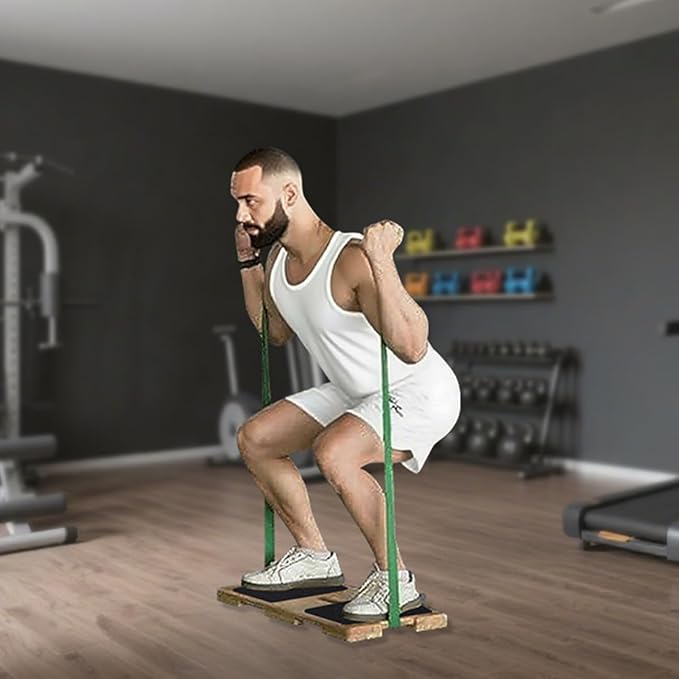 - NEW UPGRADED VERSATILE DESIGN: Sturdy wooden platform designed specifically for resistance band exercises with a slot in the middle, and anti-slip stickers on the footrest. Providing a stable base for various workout routines