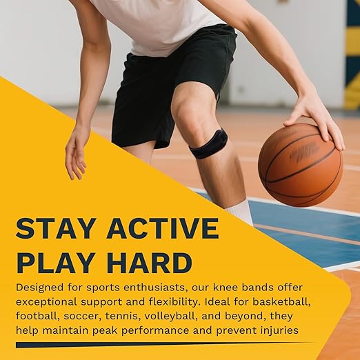 - [VERSATILE USE] Whether you're an athlete, a fitness enthusiast, or someone dealing with knee discomfort, our knee bands provide the perfect solution for a wide range of activities. Ideal for running, hiking, basketball, soccer, squats, and everyday wear, they keep you moving with confidence. Use them as basketball knee bands or a jumper's knee strap.