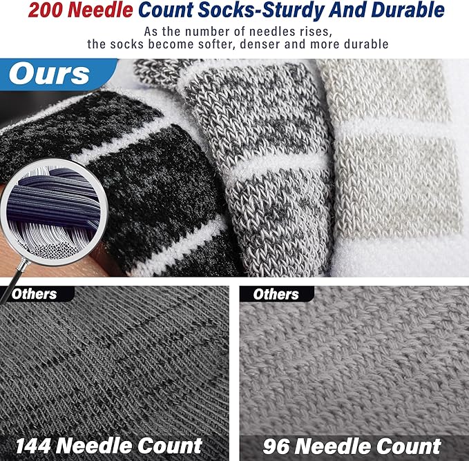 • High Performance Socks - Our 200 needle knit socks achieve the highest levels of quality and durability. While others use 96, 144 needles, we use 200 needles technology to benefit you with denser and lighter socks which makes it the best running socks, gym socks, golf socks and workout socks for men and women athletes
