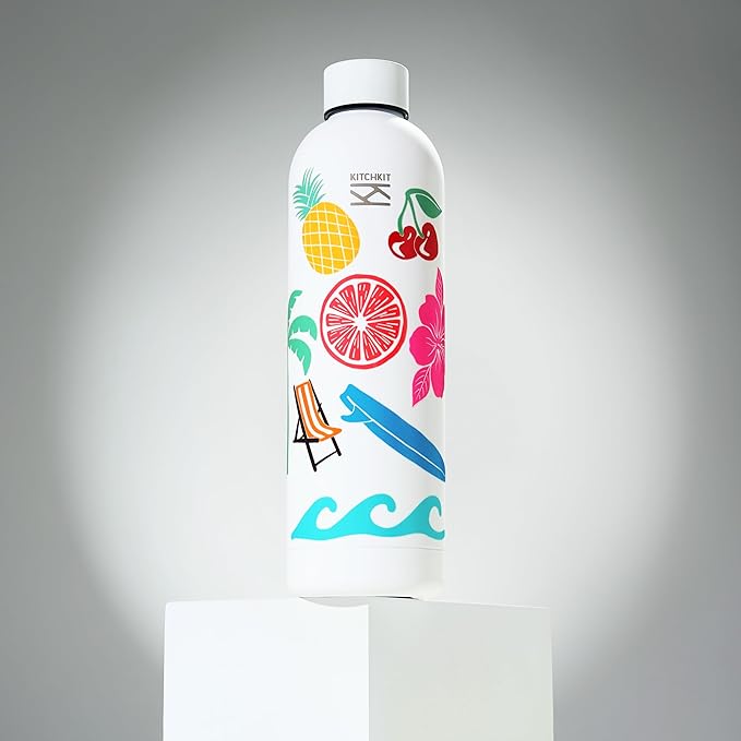Insulated Stainless Steel Water Bottle 25oz/750ml Vacuum Flask & Bonus Sticker Pack, Leak-Proof Lid, Hot & Cold Retention, Minimalist White Design, Reusable Eco Bottle (Polar Frost)