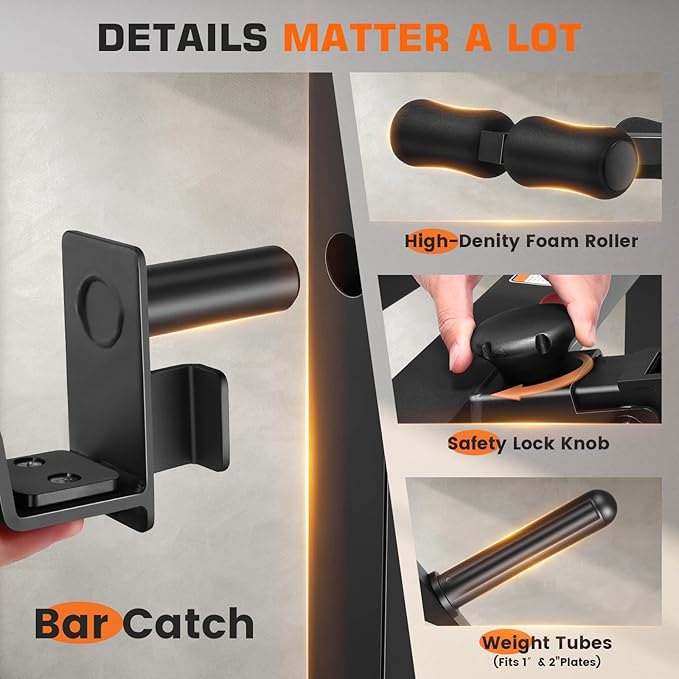 - 【Adjustable Bench Press & Barbell Rack】The ANCHEER foldable weight bench has 7 adjustable backrest positions, 4 adjustable barbell height positions. This adjustable design ensures optimal body alignment for maximized training effectiveness.