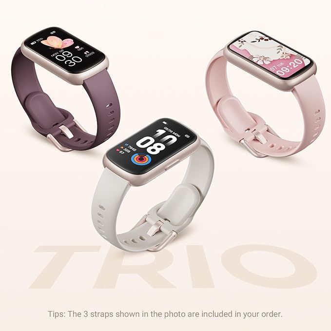 - Sleek & Lightweight Style with Versatile Bands: Discover a slim smart watch for women and men designed for elegance and ease. Its lightweight feel pairs with 3 included soft silicone sport bands, offering stylish options to match your look and activity throughout the day. A comfortable fitness tracker watch for daily wear