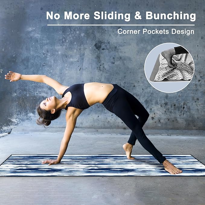 - Corner Pockets Design: Features 4 corner pockets on the backside, the non slip yoga mat towel helps secure and hold onto the mat firmly. This allows you to focus your mind, body and breath on the yoga practice, without worrying about bunching.
