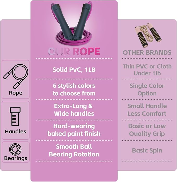 • 【Heavy Ropes, Better Results】 Each rope weights about 1LB with handles. Using a weighted jump rope effectively enhances strength and accelerates full-body calorie burning, with 5 minutes of use equivalent to 15 minutes with a regular rope. Challenge yourself to a higher level and achieve your training goals