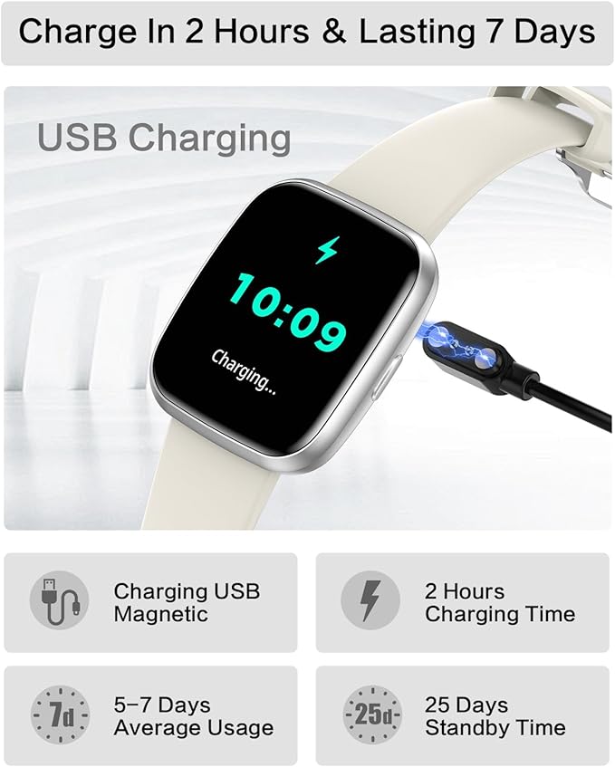 - 【Long Battery Life & Wide Compatibility】Adopts 250 mAh battery and Higher-performance chip. With 2 hours of full charging time, the blood pressure watch lasts 5-7 days with typical use and 25 days of standby. Enjoy uninterrupted smart life without frequent charge. Reloj inteligente para mujer hombre widely compatibles with iOS or Android smartphones (iOS 9.0 or above, Android 4.4 or above).