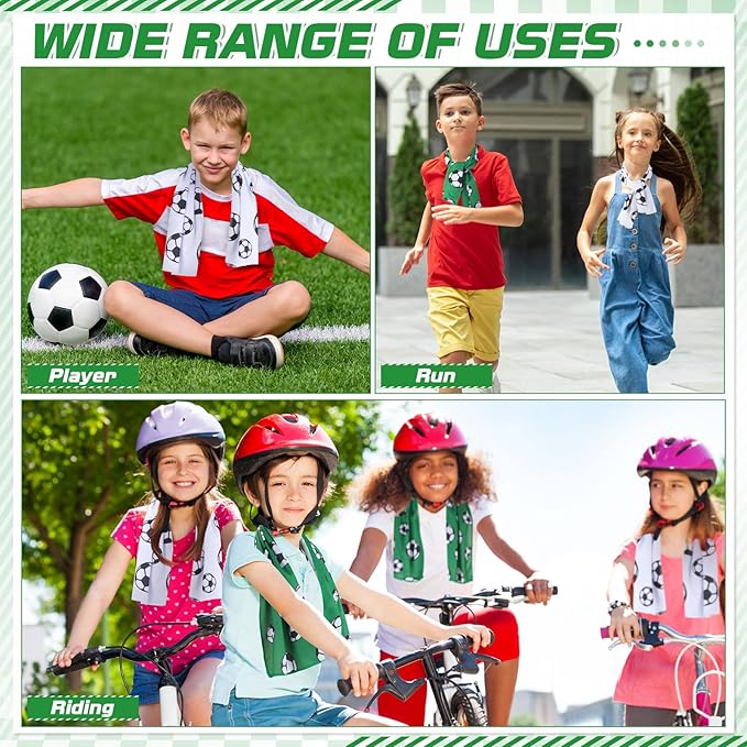 - Wide Application: our Soccer cooling towel is suitable for your sport, in addition to using it on the Soccer field, this towel can also be applied for other activities and outdoors, such as yoga, fitness, hiking, cycling or running, and is a warm companion for your workout; It can also be given as a gift to your team fan friends or party gifts