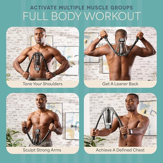 - Train Anywhere, Anytime - Take your home workout equipment on the go with the compact and portable chest and arm exerciser. Featuring an arm-locking mechanism, it’s perfect for home, office, or travel, delivering powerful results no matter where you are.