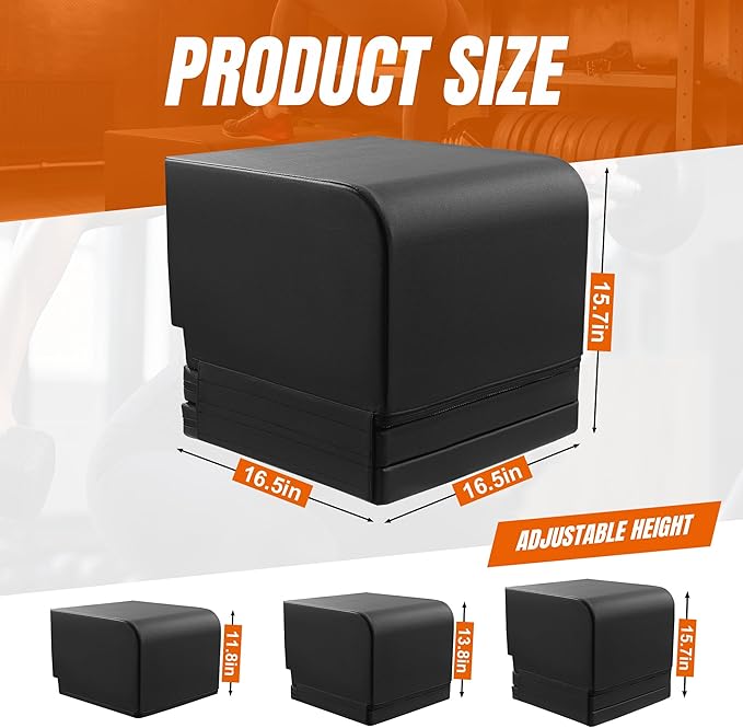 - Adjustable Height: The height of this hip thrust box can be adjusted in 15.7 inches, 13.8inches, 11.8inches, suitable for people of different heights and body types, and the weight is only 4.85 pounds.