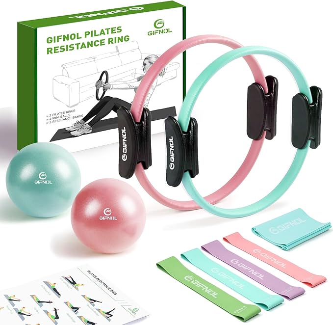 - NOTICE: ONLY【 YUAN QU】is backed by GIFNOL's full warranty and after-sales service【All-in-One Pilates Kit】The GIFNOL Pilates Kit includes everything you need for a complete Pilates workout.It features a 14-inch Pilates ring, a 12-inch Pilates Ring, 2 9-inch mini Pilates ball, 5 resistance bands in 5 levels, a exercise guide, making it the perfect Pilates essentials kit for women looking to tone Inner Thighs, Arms, and Core—Get fit in the comfort of your own home!