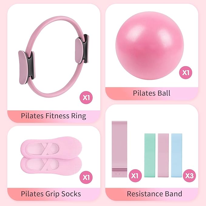 - ✅ Complete Starter Set for Every Need: Our Pilates Kits includes a 14" magic ring, 9" anti-burst mini ball, 1pc long resistance bands, 3 level pilates loop bands,non-slip socks, and a workout guide—perfect for toning your core, thighs, arms, and glutes. Ideal for beginners and pros alike!