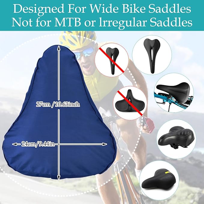 - Size Detail: The bike saddle size is 27 x 24cm, fit for bike saddle up to 10.6 x 9.4 inches. This bicycle saddle cover is cut to fit your city bike or casual bike saddle well