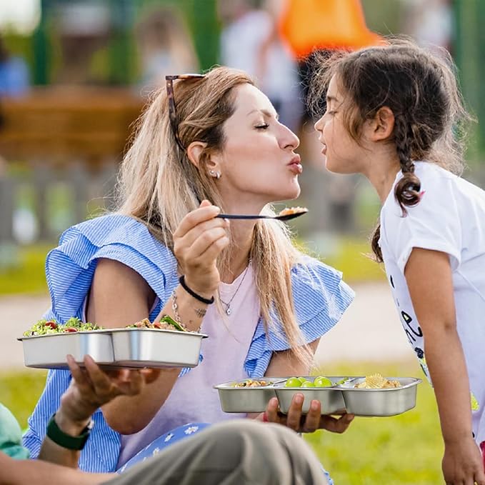 - Promote Healthy Eating Among Family Members: (10.43*4.13*2IN/6.76OZ*3 compartments) The carefully divided compartments help control portion, making it easy to prepare balanced meals for kids or adults. Perfect for school, road trips, camping, picnics, or the office—pack once and enjoy fresh food in hours