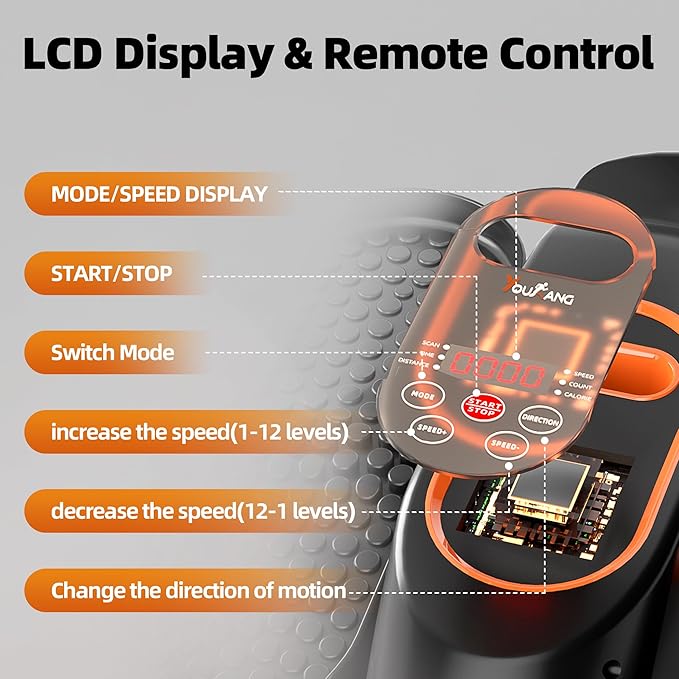 - 📊 LCD TRACKER MONITORS YOUR FITNESS PROGRESS - The clear 3.5" display tracks your time, speed (RPM), stride count, distance, and estimated calories burned. It's self-powered and simple to use—no complex Bluetooth setup required—making it ideal for seniors to track their daily activity goals.