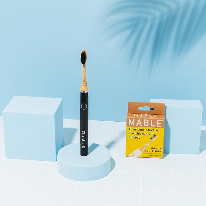 Bamboo Electric Toothbrush Heads | Compatible with Gleem Electric Toothbrush | 4 Brush Heads with Soft Bristles | Plant-Based Adult Size Replacement Heads
