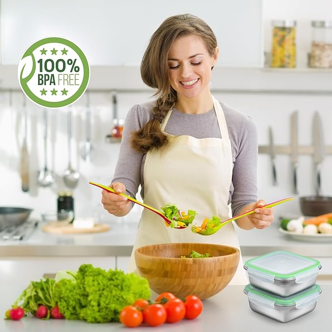 - 【Premium 304 Stainless Steel】Crafted from high-quality, food-grade 304 stainless steel, these containers are rust-resistant, non-toxic, and built to last. They preserve the natural taste of your food without absorbing odors or stains, ensuring every meal is fresh, clean, and healthy.