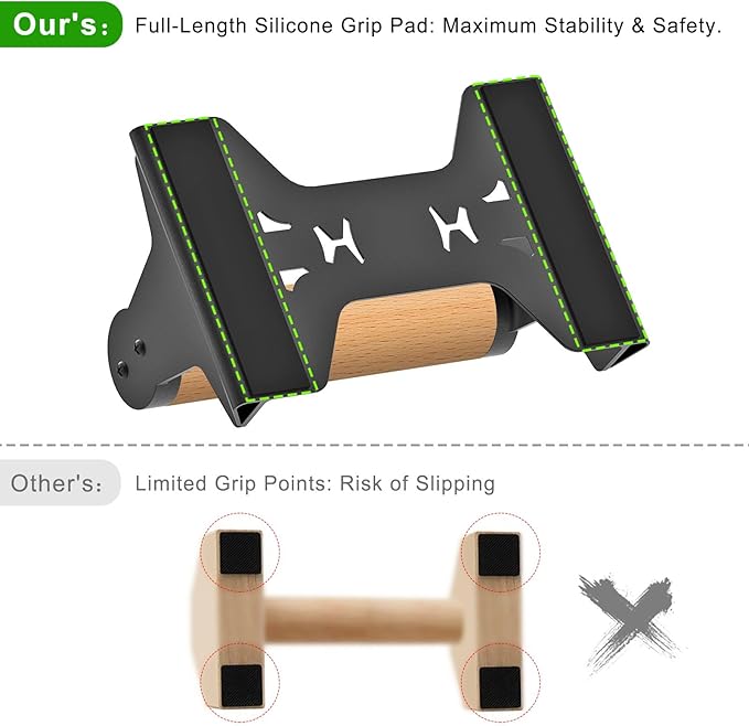 - π‘οΈ NON-SLIP SECURITY INDOORS & OUT: Work out anywhere with confidence. High-grip silicone pads protect your floors (hardwood, tile, gym mats) and create an ultra-secure base on any surface, preventing slips during dynamic movements like handstand presses or explosive push-ups.