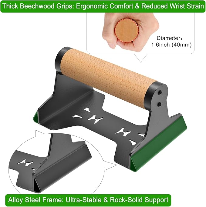 - π³ ERGONOMIC BEECH WOOD HANDLES - COMFORT MEETS HYGIENE: Ditch sweaty, slippery metal or plastic! Our round shaped beech wood handles contour perfectly to your grip, reducing wrist strain and providing superior comfort. Naturally sweat-resistant and easy to clean.