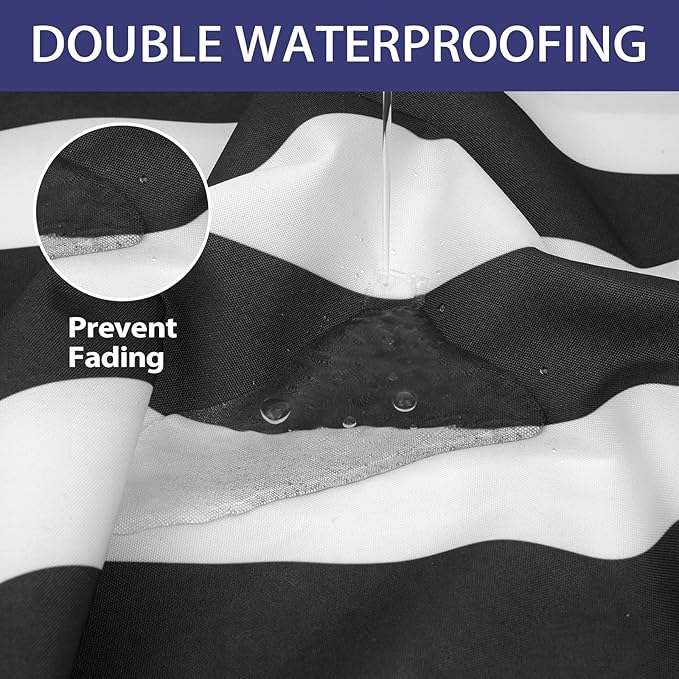 Outdoor Bench Cushion 48x16x3 Inch with Ties, Thick Waterproof Porch Swing Cushions for Patio Furniture Chair Pad, Seat Sofa Garden Replacement Cushion Sponge Filling (Black&white Stripes, 48x16)