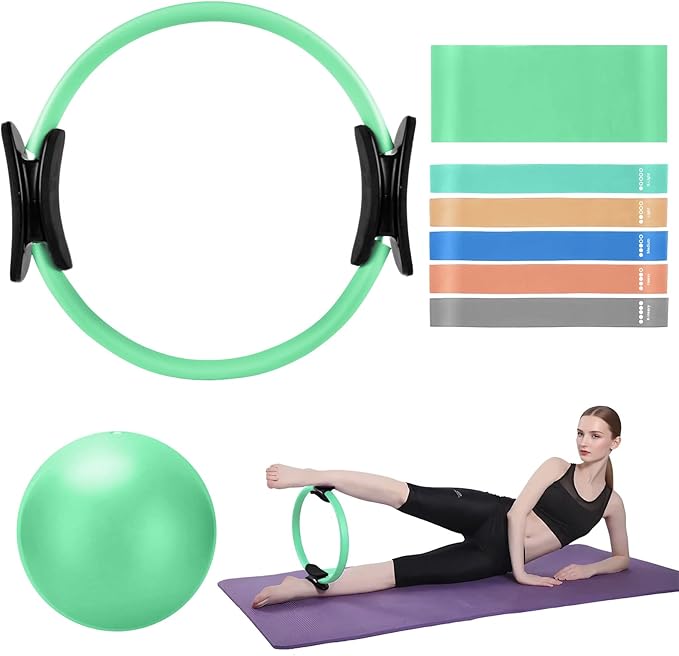 - ๐๐๐๐๐๐๐ ๐๐๐๐๐๐๐๐๐ ๐๐๐๏ผPilates Kit includes everything you need for a complete Pilates workout. It features a 14-inch Pilates ring, 9-inch mini Pilates ball, resistance bands in 5 levels , elastic strap,Workout Guide ,making it the perfect Pilates essentials kit for women looking to improve strength, flexibility, and stabilityโall from the comfort of home.