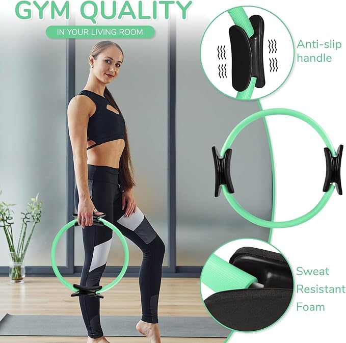 - ๐๐๐ฟ๐ฎ๐ฏ๐ถ๐น๐ถ๐๐ & ๐๐ฟ๐ถ๐ฝ; Our equipment suitable for beginners and home use๏ผThis 14-inch Pilates Ring is where the magic happens. It boasts high grade, resilient fiberglass encased in a thick rubber shell, which gives the ring a superior resistance and durability. It also features an unrivalled comfortableness thanks to the wonderfully soft, 7mm thickness foam padding on both inner and outer handles.