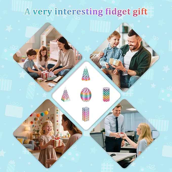 - Very suitable for office desks and portable carrying (appease the crying child by giving fidget toys): This set is perfect as a stylish office desk decoration or portable pocket toy, with a size that fits your desktop, travel bag, or even a small wallet. You can carry this toy to comfort little children when going out for fun or picnicking. Its smooth and impossible conical design is cool in any environment, providing cautious stress relief whenever you need to focus or relax.The Fidget toys for adults kids is great.