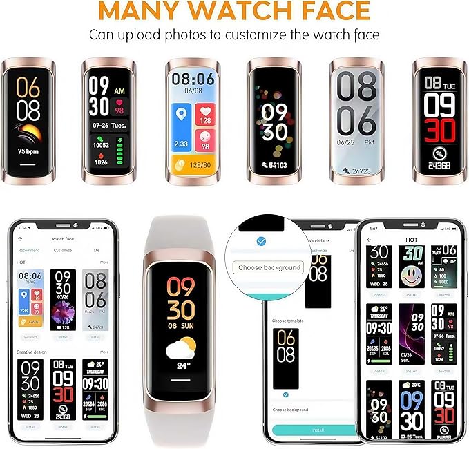 - 【Customized dial and AMOLED color screen】One click control makes this fitness activity tracker watch more convenient and simple, and the high-definition display screen is more stylish. There are multiple dial styles to choose from in the app, and you can also customize the dials of men's and women's smartwatches using photos from your own photo album.This stylish and lightweight smartwatch is a desirable gift for people who love sports and care about their health