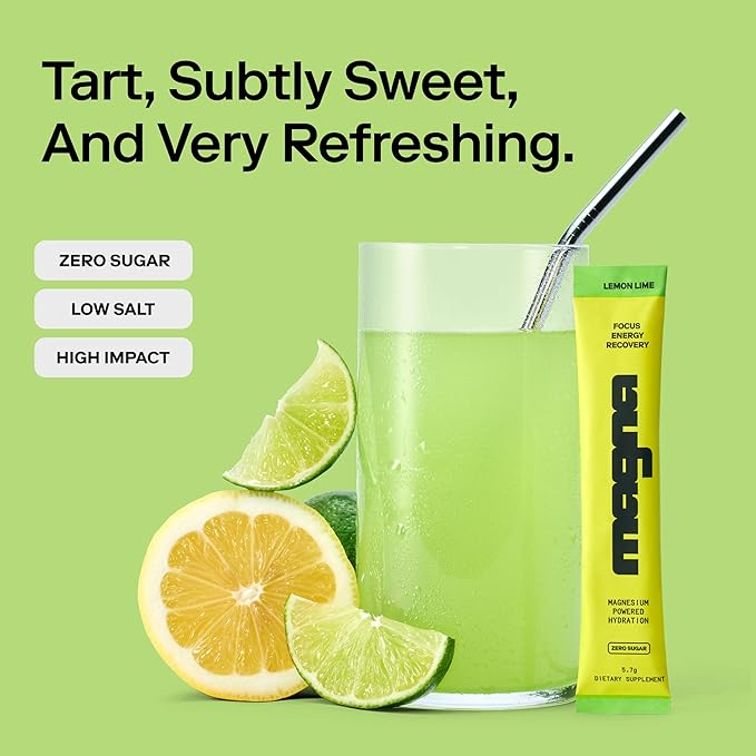 - ZESTY LEMON LIME FLAVOR: Delight in the crisp, tangy taste of Lemon Lime with every sip of Magna. Naturally flavored and sweetened with Stevia, this invigorating blend delivers a refreshing citrus experience that makes staying hydrated both delicious and enjoyable. Free from artificial additives, it provides a clean, vibrant flavor while ensuring you stay hydrated and energized throughout your day.