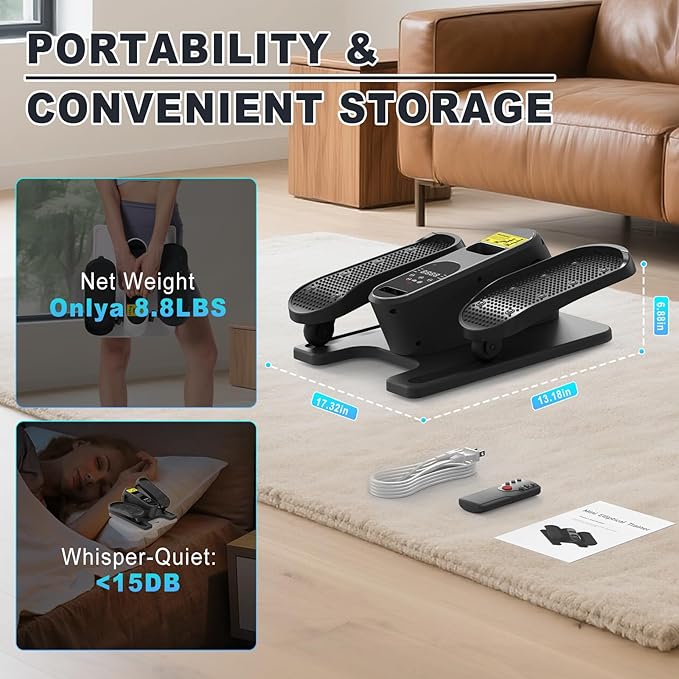 - 【Lightweight and portable】Weighing only 13 lbs this compact leg exerciser fits under desks/beds (12" height) and travels in car trunks. Ideal for small space workout equipment, Focuses on thigh, calf and core muscles, promoting healthy exercise habits. Non-slip pedals ensure stability