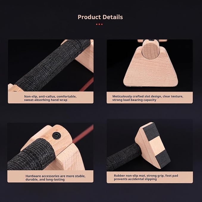 - 【Premium Solid Wood Construction】Made from high-quality, durable solid wood for natural non-slip grip and enhanced comfort, reducing wrist fatigue and injury risk during intense workouts. The sturdy design withstands up to 540lbs, ensuring stability and longevity for prolonged training sessions.