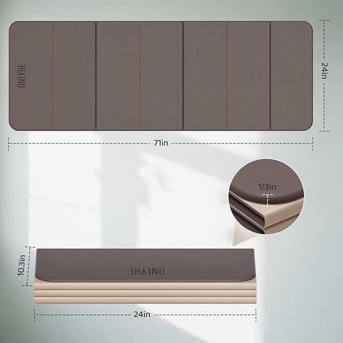 Foldable Yoga Mat,Exercise Mats for Home Workout,Comfortable and Durable,8mm Thick-Portable Folding Mat,Non Slip,Pilates Mat Thick,Outdoor Use,Meditation,Travel,Camping(71"x24" x0.31")
